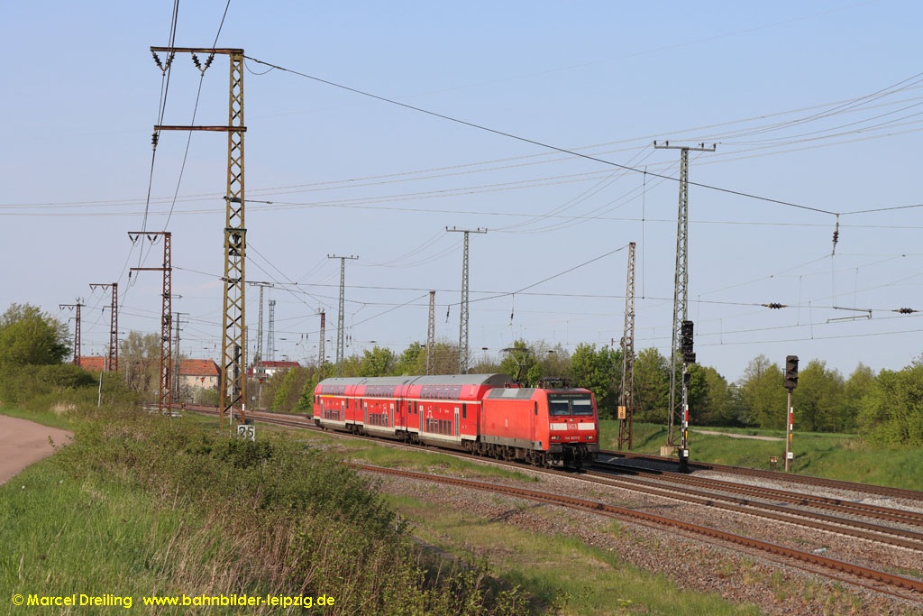 am 01.05.2022 mit RE18 4893 Halle (S) Hbf - Jena-Göschwitz in Großkorbetha