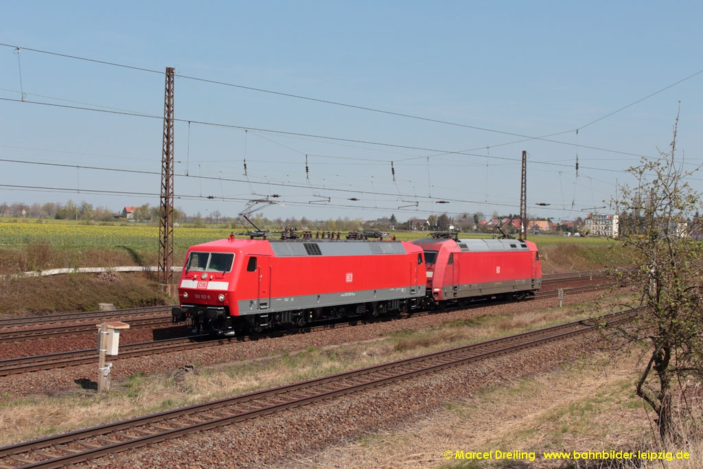 am 02.04.09 bei Großlehna, es schiebt 120 157-3