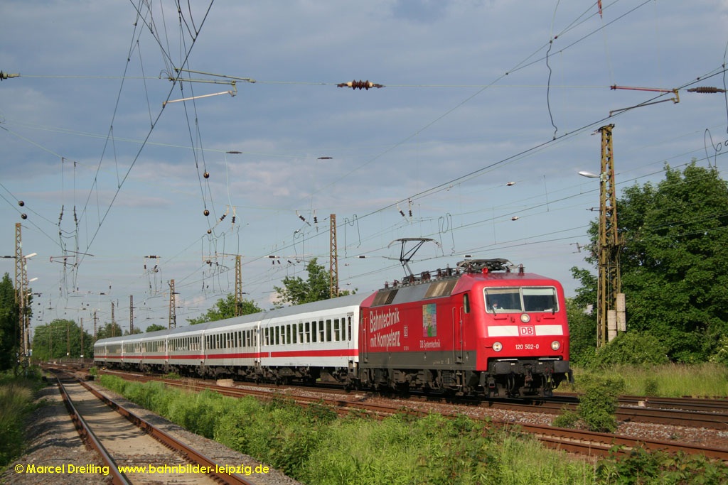am 02.04.09 mit IC 73933 Leipzig Hbf - Nürnberg Hbf bei Großlehna, es schiebt 120 102-9