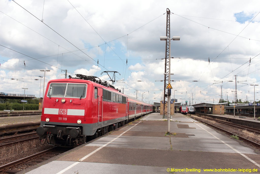 am 18.05.09 in Regensburg Hbf, es schiebt 111 182-2