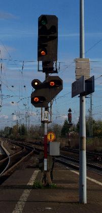 Fahrt mit 40 km/h, Halt erwarten. Das Signal steht im verkürzten Bremswegabstand