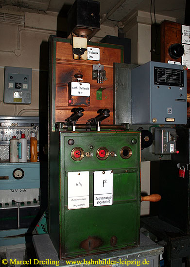 Blockwerk der Befehlsstelle, welche vormals im Empfangsgebäude war. Auf den Stellwerk sind Fahrdienstleiter und Wärter direkt vereint.