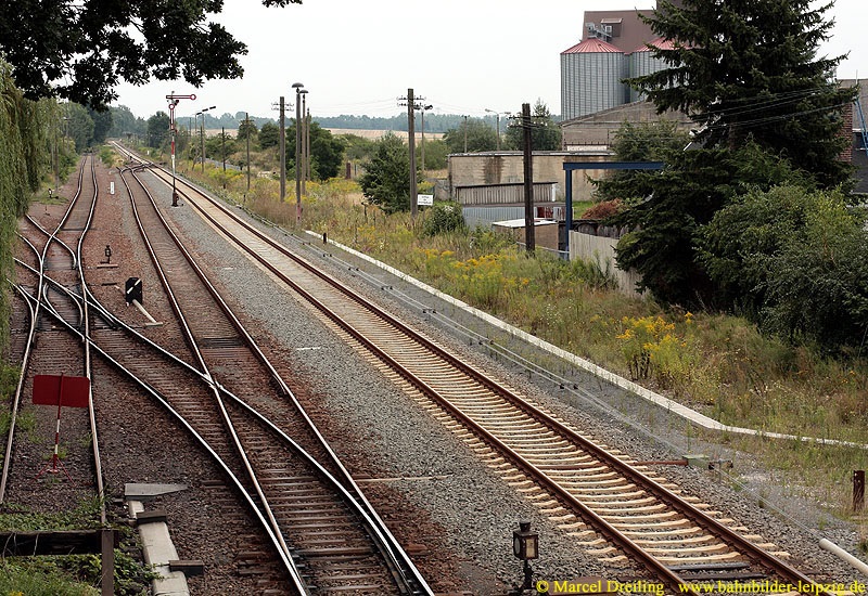 Einfahrt aus Richtung Grimma ob. Bahnhof, links der Anschluss Sächsiche Quarzporphyr